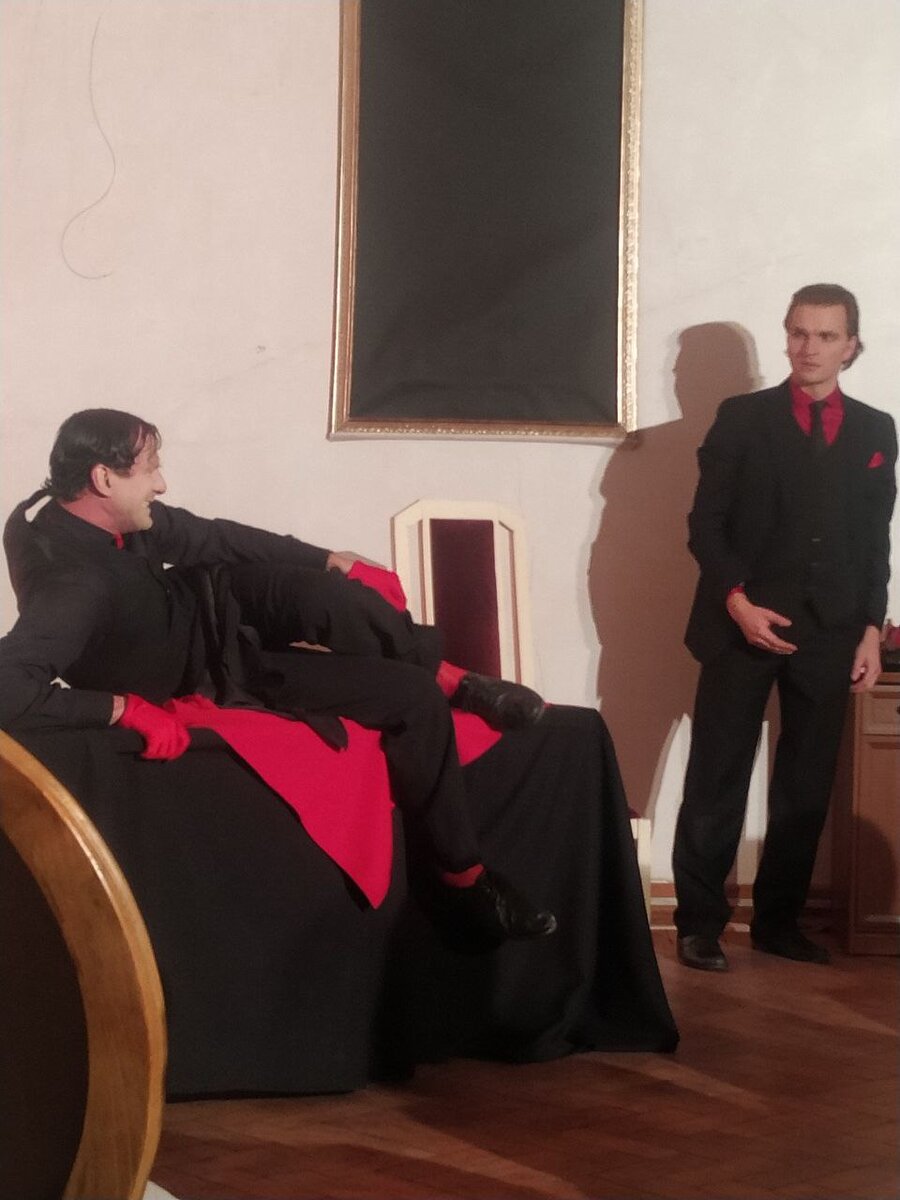 Мне несказанно повезло, так как в этот вечер роль Ивана Фёдорович Карамазова, среднего брата - исполнял Ярослав Шевалдов. Ярослав является режиссёром - постановщиком, автором инсценировки и художником-постановщиком спектакля. Если спектакль поставлен Ярославом Шевалдовым – для меня это показатель качества и глубины драматургии. Это не первый спектакль, который я посмотрела в театре Есенина и игра Ярослава в каждой из ролей, которые он исполняет в постановках, невероятно талантлива.