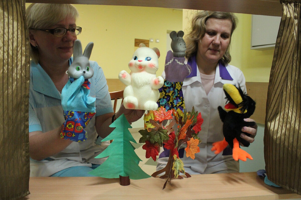 Кукольный спектакль о зимнем зайчике прошёл в особом семейном центре «Роза ветров»