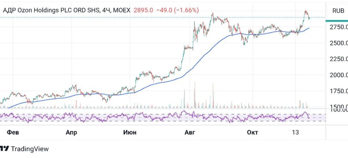 OZON ➡️ Ozon изучает возможности по предоставлению брокерских продуктов в рамках своей экосистемы. Уже сейчас ведётся активный набор сотрудников на новое направление. ➡️ Как видим компания будет вкладываться всё в новые и новые проекты, что неизбежно негативно отразится на прибыли. Но вот на долгосрочную перспективу это крайне позитивно. ➡️ Технически хотелось бы увидеть 2750₽, но на данный момент это только мечты, ведь негативных воздействий на котировки нет.
