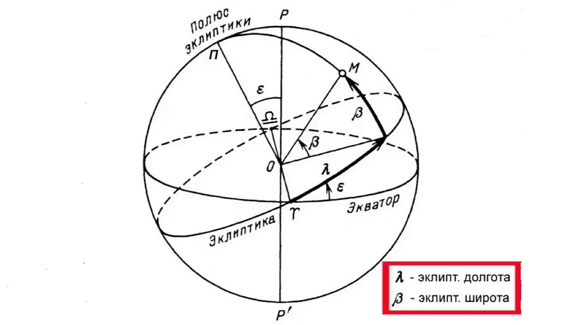 Основной плоскостью в эклиптической системе является плоскость эклиптики, а полюсом – полюс эклиптики (точка на небесной сфере, находящаяся на пересечении с перпендикуляром к плоскости эклиптики).