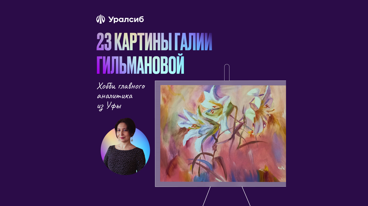 Телеграм-канал «Команда Уралсиба» помогает не только быть в курсе главных новостей банка, но и ближе узнавать коллег. Недавно сотрудники различных подразделений поделились, как предпочитают проводить свободное время. Например, главный аналитик Центра технологий РКО и депозитных продуктов Департамента бизнес-технологий и тестирования Галия Гильманова любит рисовать. Как это помогает ей в работе и чем она обычно вдохновляется, читайте в рассказе от первого лица. Мне всегда интересно узнавать и пробовать что-то новое, и к изобразительному искусству я впервые приобщилась в 2015 году. Тогда я самостоятельно нарисовала три картины, а потом забросила занятия почти на восемь лет. Так вышло, потому что я подолгу сидела над картиной, хотела поскорее её закончить и в итоге перегорела. К рисованию я вернулась в феврале 2023 года. Моя коллега рассказала, что проходила обучение по основам изобразительного искусства и курсу масляной живописи в уфимской студии «АртКолорит» и позвала меня за компанию.
