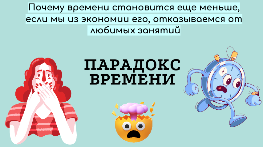 Многие из нас ухаживая за детьми или уже за родителями, строя карьеру и т.д. испытывали дефицит времени. И как же мы решали эту проблему? Правильно, мы отказывались от каких-либо занятий, считая, что так экономим время. «Не буду ходить в спортзал, можно же и дома позаниматься (если будет время), зачем мне курсы вязания, все равно вязать некогда, без бассейна вполне обойдусь, вот буде время, тогда снова пойду…». Примерно так и рассуждаем. Но, знаете какой парадокс? Времени не становится больше! Отказавшись от чего-либо приятного и полезного, мы также испытываем его недостаток, хотя занятий стало меньше. И количество времени, как шагреневая кожа, съежилось. Получается эти занятия, от которых мы отказались, наполняли нас не только радостью, энергией, но и каким-то образом увеличивали время. Может, потому, что тратили мы его на себя и свою жизнь? Я думаю многие со мной согласятся, вспомнив такие случаи из своей жизни. Вот примеры: ========================== Молодая женщина ухаживала за б