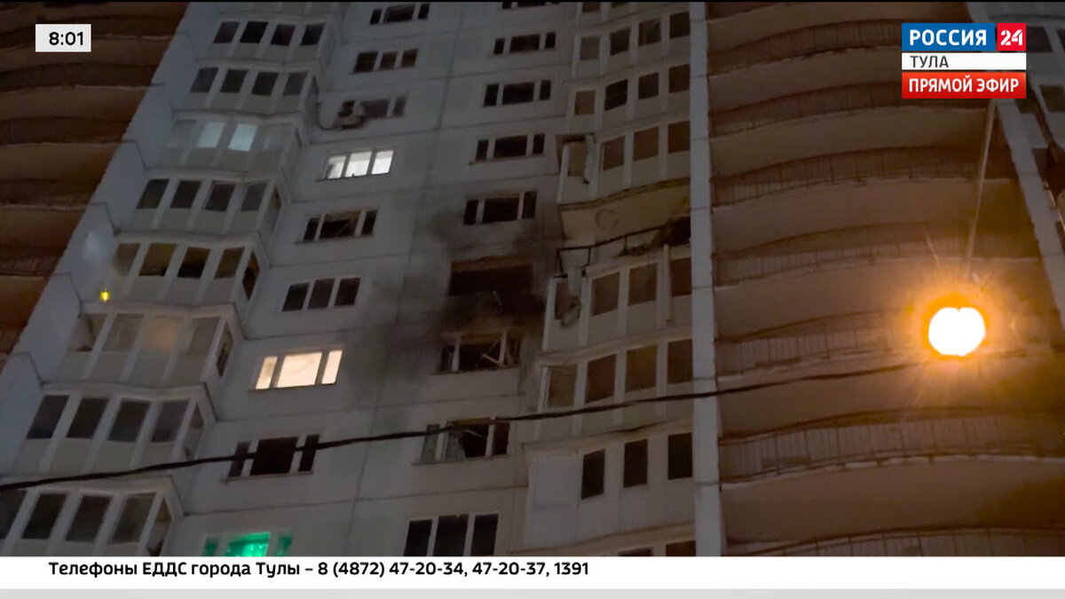 Громкий хлопок разбудил ранним воскресным утром жителей Пролетарского района. Сбитый беспилотник, потерял управление и протаранил окна 12 этажа в многоэтажке на улице Хворостухина. Итог – несколько разбитых окони испуг, пережитый в моменте, жителями домов в округе. –Маленькая проснулась, заплакала. Мы поняли, что что-то случилось, потому что сразу приехали пожарные и скорые. По свидетельствам очевидцев, экстренные службы действительно прибыли в считанные минуты. Пока на месте работали взрывотехники и следователи, жителей из событийного подъезда разместили в теплых помещениях соседнего детского сада, где людям был предложен ранний завтрак с горячим чаем. Дмитрий Миляев, первый заместитель губернатора Тульской области: По поручению губернатора незамедлительно было организованно реагирование, все силовые ведомства в экстренном порядке прибыли, кареты скорой медицинской помощи. По счастью, обошлось без жертв. Один человек пострадал, ранение стопы. Виктор показывает свое легкое ранение… Гов