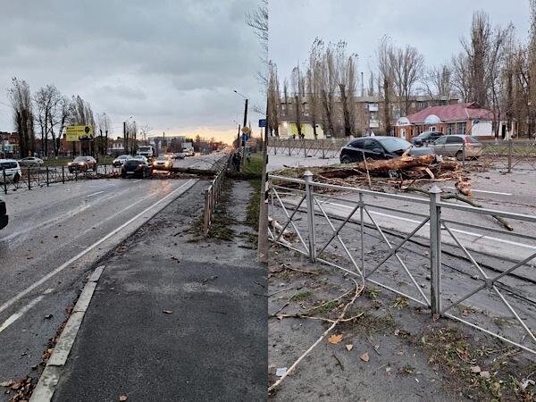 Утром в районе улицы Харьковской, 217 на капот автомобиля рухнуло дерево. Ствол не выдержал сильных порывов ветра и приземлился на транспорт. Упавшее дерево перегородило проезжую часть и парализовало движение транспорта.