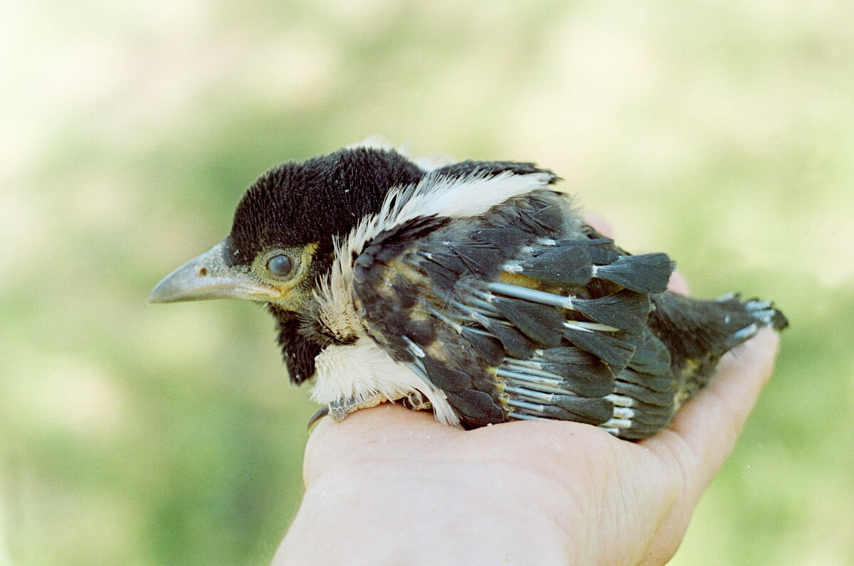 - Ну, не бойся, глупый, потерпи минут пять, я же только сфотографирую тебя и сразу верну обратно. - уговаривал я птенца сороки, вытаскивая его из гнезда, построенного птицами на вершине лоха узколистого или, по-местному, на маслине, надо сказать, очень колючем дереве. Гнездо крепилось на трехметровой высоте и представляло собой шар диаметром до сорока сантиметров из ветвей, колючек, стеблей трав. Птенец, громко крича во всё горло, цепляясь сильными когтями за всё, что попадётся, вертел чёрной головой, посматривая живыми глазами, то на меня, то на родителей, которые летали вверху надо мной и стрекотали, поддерживая своего малыша. Изредка, с отчаянным пулемётным треском, они делали ложные налёты, пикируя на мою голову, но в полуметре от цели взмывали вновь. А я с трудом, уцепившись одной рукой за ствол, вначале пугался, пригибаясь, а потом и вовсе перестал обращать на них внимание, все-таки вызволил упрямого птенца из гнезда и засунул его в мешочек. Птенец сразу успокоился, поняв, что с