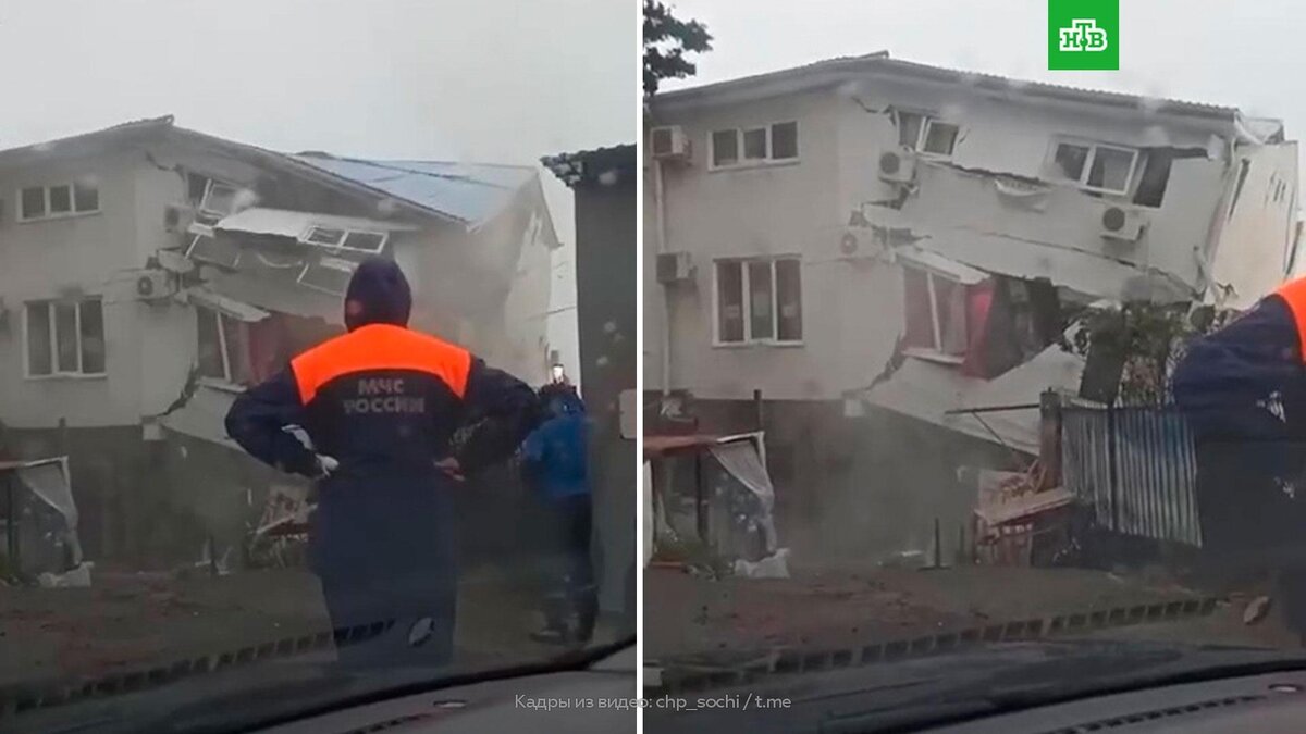 [ Смотреть видео на сайте НТВ ] Трехэтажный дом рухнул в Сочи из-за сильного шторма, который обрушился на Кубань накануне. Очевидцы публикуют в соцсетях кадры с места ЧП. Сочинские паблики сообщают, что землю под домом подмыло, после чего здание обвалилось. Известно, что люди успели покинуть жилище, никто не пострадал. Напомним, мощный шторм обрушился на Кубань и Крым накануне, 26 ноября. В Адлере потоки воды хлынули на улицы города, снося все на своем пути. В Крыму скорость ветра достигала почти 150 километров в час. Без света остались полмиллиона человек, перекрыты дороги, разрушены набережные, повреждена курортная инфраструктура. Объявлен режим ЧС. Из-за непогоды один человек погиб, еще четверо пострадали. [ Смотреть видео на сайте НТВ ]