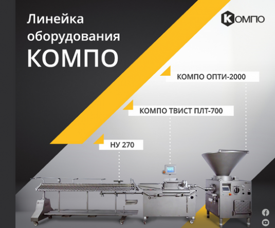 Линейка оборудования КОМПО для производства сосисок, сарделек и колбасок