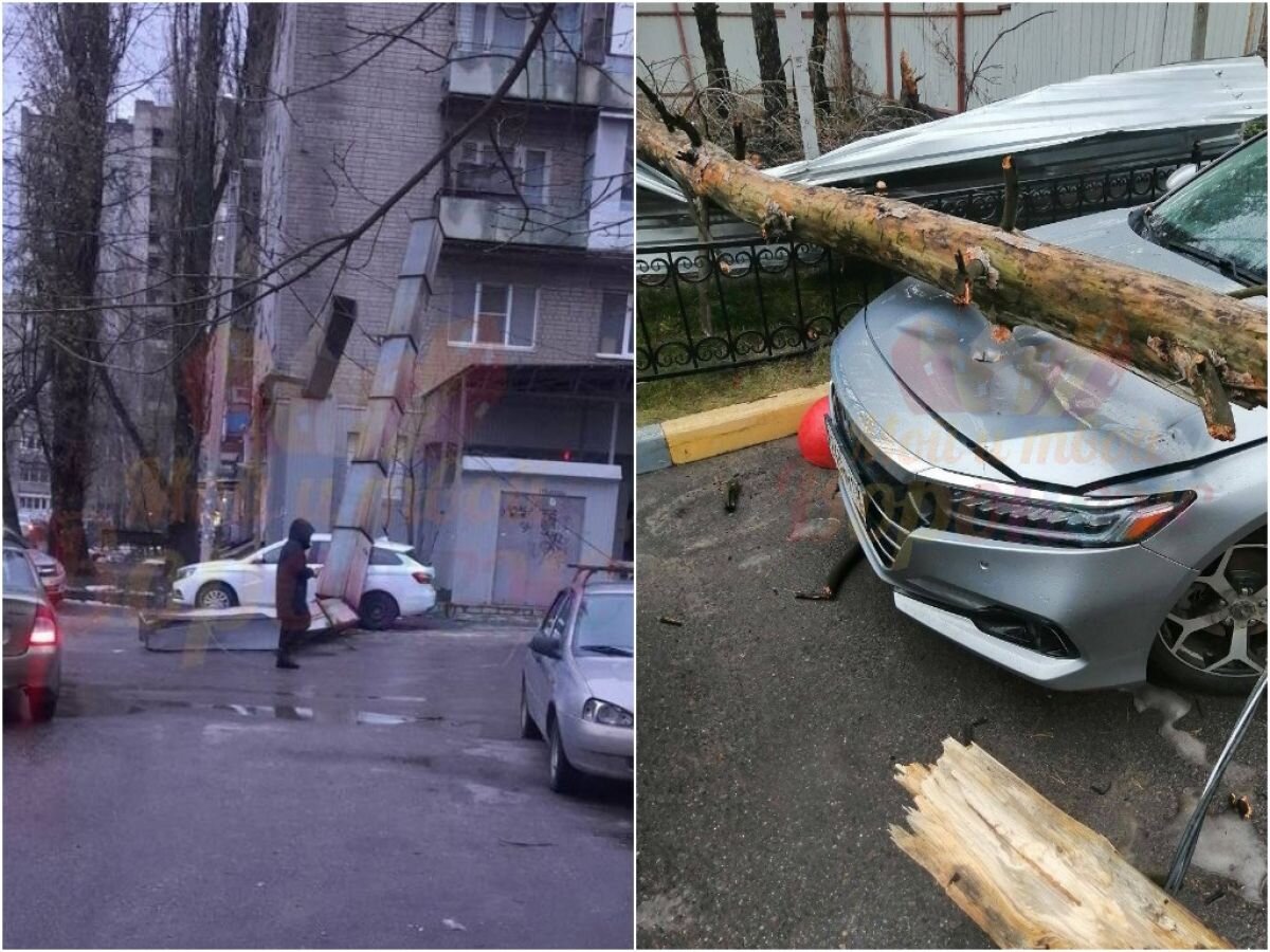 В Воронеже легковушки приняли на себя последствия от падения дерева и дымохода