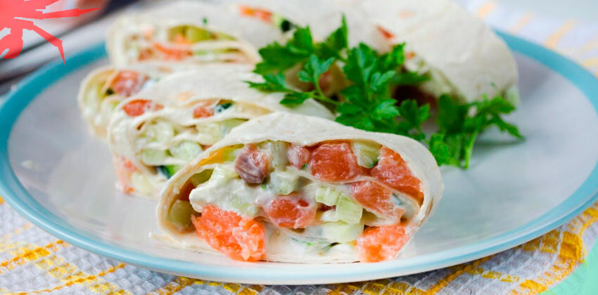 Рецепт: Рулет из лаваша с красной рыбой и авокадо