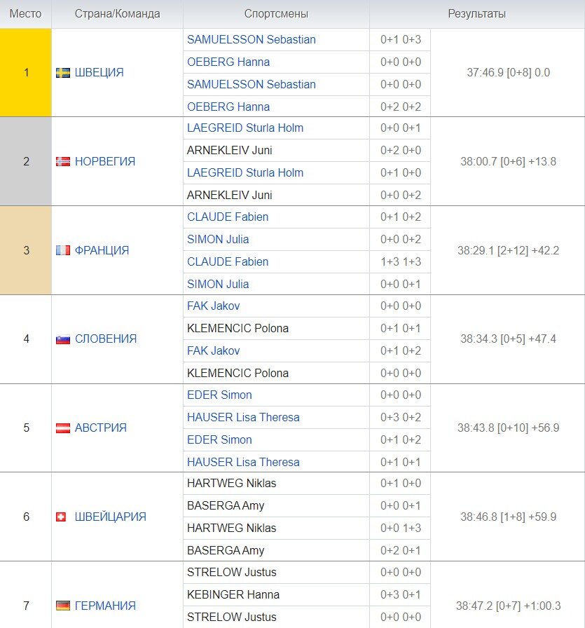 Кубок мира по биатлону - это то зрелище, которое не сильно страдает из-за отсутствия россиян. Нет, нам-то, конечно, грустно, а вот остальным нет. В то время, как лыжные гонки скатываются в непроглядную тоску теперь уже и без сильного Клэбо, в биатлоне царит веселье. Даже рекорд поставили! В общем, кто не видел, милости просшу в мой обзор. Стартовал сезон с сингл-микста. Как это часто бывает, многие команды сделали ставку на эстафету, и в сингл поставили не самый мощный состав.На бумаге фаворитами смотрелись Шведы с их Самуэльссоном и Ханной Оберг и французы с Клодом и Симон. А по факту победу одержали шведские спортсмены, а Франция с двумя!!! штрафными кругами каким-то чудом зацепилась за бронзу. С серебром норвежцы Лагрейд и Арнеклейв (не самое примелькавшееся имя в женском биатлоне). Ну зато спустя пару часов французы отыгрались по полной и выиграли смешанную эстафету, ускакав от всех даже со штрафным кругом. Стрельба Жаклена еще с прошлого года пугает, и сейчас как-то не легче. Пов