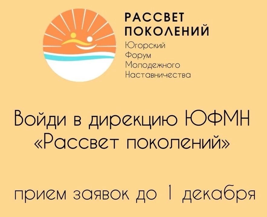 💥ОТБОР В ДИРЕКЦИЮ💥 Всем привет! С радостью сообщаем Вам о старте отбора в команду организаторов нашего проекта! ❓Кто может принять участие в отборе? - Учащиеся школ, студенты ВУЗов и СПО в возрасте от 14 до 25 лет. ❓Что нужно сделать, чтобы принять участие: 1. Заполните анкету: https://clck.ru/36jd58 2. Подпишитесь на нашу группу и лайкните этот пост. 3. Подпишитесь на Telegram-канал: https://t.me/rassvetpokoleny Совсем скоро с Вами свяжутся и добавят в группу для дальнейшего взаимодействия! ‼ПРИЁМ ЗАЯВОК продлится до 1 декабря 23:59 МСК! ❓Что будет за работу в проекте? Часы на Dobro.ru, сувенирная продукция и благодарственные письма в нашем фирменном стиле. Отделы (подробная информация о них отражена в анкете): 🔹Пресс-служба (копирайтеры и дизайнеры) 🔹Отдел по работе с участниками форума 🔹Отдел по созданию культурно-деловой программы Проект победил во Всероссийском конкурсе молодежных проектов «Росмолодежь.Гранты». Будет реализовываться с января 2024