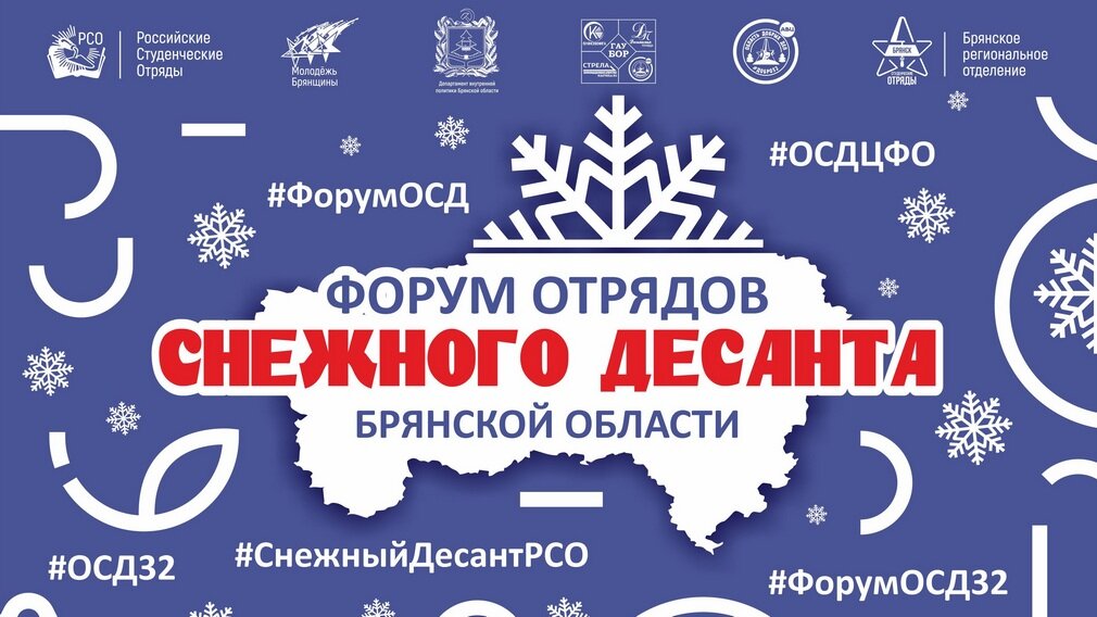В Брянской области с 29 по 30 ноября пройдет форум отрядов «Снежного десанта» региона. Мероприятие направлено на обмен опытом участников Всероссийской акции «Снежный десант РСО». Об этом сообщают организаторы. Открытие мероприятия состоится в среду, 29 ноября. Начало в 15 часов. Как сообщают организаторы, в нем примут участие 80 бойцов «Снежного десанта» Брянщины. Участники форума встретятся с представителями фонда «Защитники Отечества». Бойцы РСО станут участниками акции по уборке снега на территории социально-значимых объектов, приуроченной ко Дню добровольца. 12+ ФОТО: Брянское региональное отделение Молодёжной общероссийской общественной организации «Российские Студенческие Отряды» На Брянщине прошел форум отрядов снежного десанта