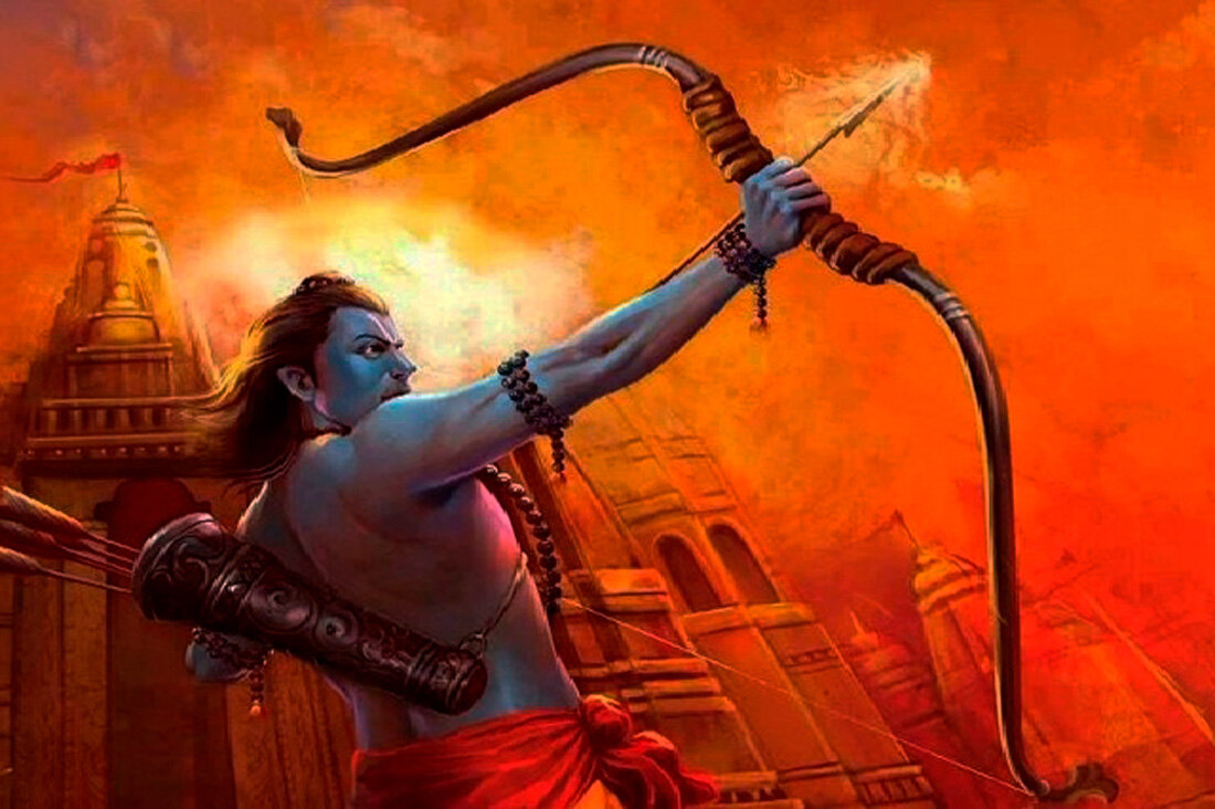 "Арджуна поднялся в небеса, чтобы получить божественное оружие от небожителей и научиться им пользоваться. Там Индра, Владыка небес, велел Арджуне уничтожить армию демонов, насчитывающую 30 миллионов существ, которая скрывалась в крепостях на дне океана.