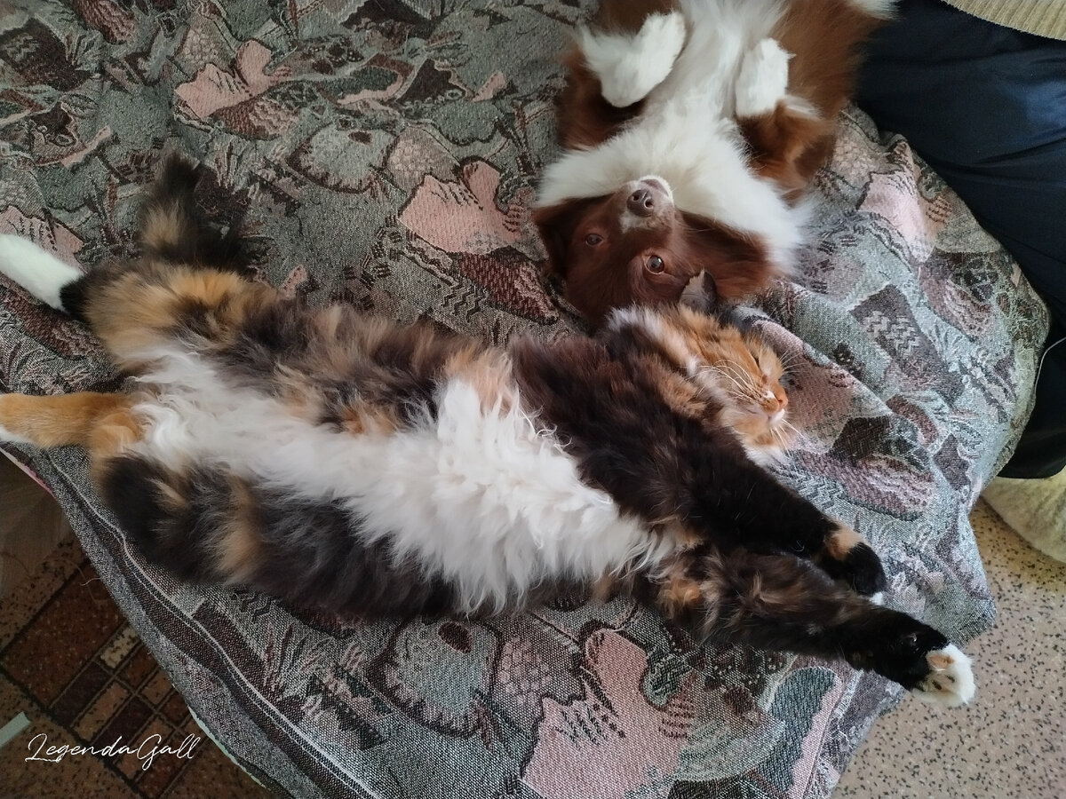 Лучше всех было нашим лохматым домашним... Из-за нашего вынужденного безделья каждой досталась двойная порция почесушек и поласкушек... Так смешно на собаку, кошка начинает мявкать и лапой за руки цепляться. Вот разделили животных и одновременно двоих гладили и почесывали. Реакция легко читается на их мордуленциях ))