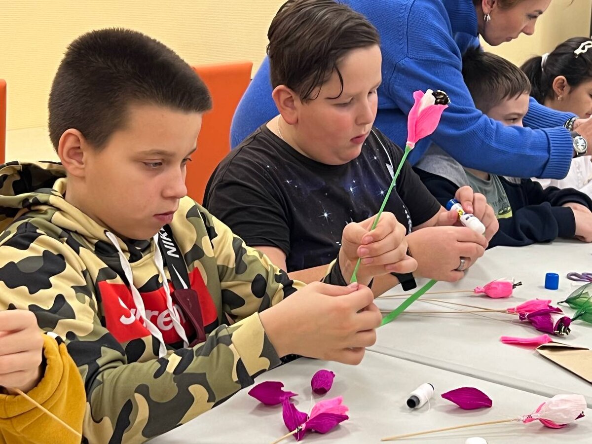 «Мама – это жизнь», «от мамы зависит продолжение рода», «без ее любви и заботы не выжить» - такие мудрые слова говорили юные реутовцы. Под руководством педагога ребята усердно собирали бутоны цветов из лепестков гофрированной бумаги. Надо отметить, что мальчишки совершенно не отставали от девчонок. Каждый смог проявить творчество, воплотить свои идеи. В конце ребята написали добрые поздравления на открытке к букету. «О мастер-классе я узнала из телеграм. Сразу позвонила и записала дочку. Сейчас каникулы, дети скучают дома, а тут такая прекрасная возможность и красоту создать, и бесплатно, и мне, как маме, приятно, что о нас вспомнили. Дочь в восторге, а букет просто