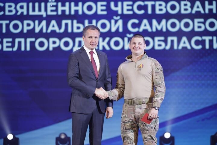 Глава Белгородской области Вячеслав Гладков наградил бойцов теробороны за спасение шебекинцев. Мероприятие состоялось в минувшие выходные. По словам главы региона, 59 человек получили заслуженные награды за личный вклад в обеспечение безопасности на территории Белгородской области, решение особо важных задач, а также за отвагу, проявленную при эвакуации жителей во время массированного обстрела Шебекинского городского округа. Отважным бойцам вручили специально учрежденные медали под названием «За доблесть в рядах Белгородской самообороны». «От всех жителей Белгородчины выражаю искреннюю благодарность этим мужественным людям, которые встали на защиту своей страны не за деньги, не за какие-то привилегии, а за родную землю, за дом, за семью и детей. Наша самооборона является образцом гражданской ответственности в условиях проведения СВО. Вспоминаются грайворонские и шебекинские события этого лета, когда благодаря бойцам самообороны удалось не допустить жертв среди жителей. Днём и ночью они