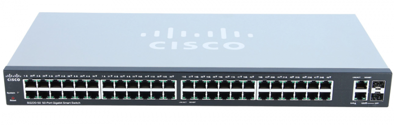 L2 коммутатор Cisco SG220-50 с коммутационной способностью 100 Гбит/с входит в серию SMART-коммутаторов. Устройство оборудовано 48 Ethernet-портами, работающими в режиме 10/100/1000 Мбит/с, 2 комбинированными портами Gigabit Ethernet RJ45/SFP.