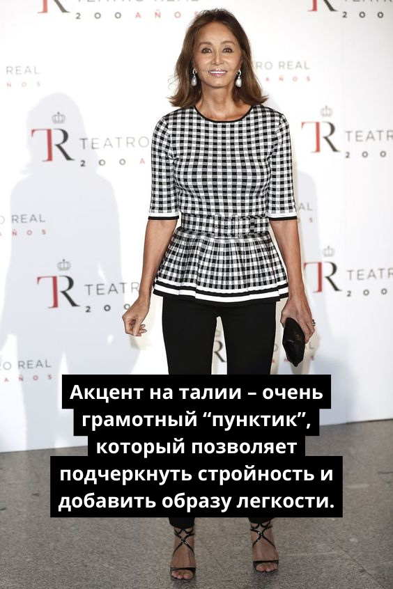 Акцент на талии — это один из главных приемов, которым пользуются многие знаменитые модницы в возрасте. И наша героиня — не исключение.