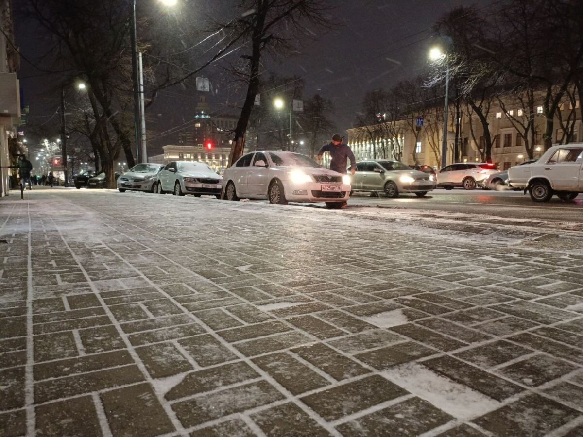 Тротуары и дороги Воронежа покрылись льдом из-за дождя вперемешку со снегом