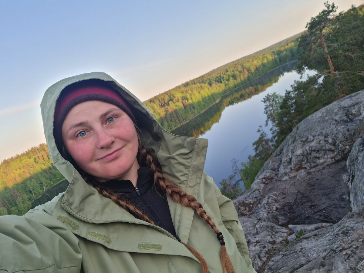 Очень хочется помыться (простите за откровенность). Нормальный душ был 4 дня назад в Сортавале. Все озера и реки ледяные. Вот тебе и лето… Приходилось мыться частями: из бутылочки, салфетками, обтираться «сухим душем». Потрогала воду в реке – вроде не ледяная. Решаюсь окунуться. Холодно, но оно того стоит.