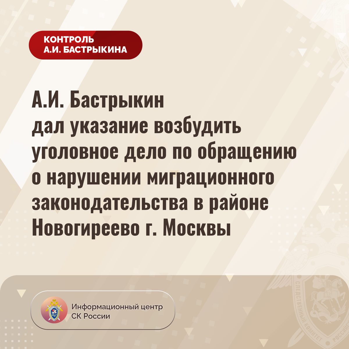 #СледственныйКомитет #СКРоссии #СКР #ИЦСКР #Информационныйцентр #АлександрБастрыкин #ПредседательСКР #КонтрольПредседателяСКР #КомментарийКонтроль #Москва