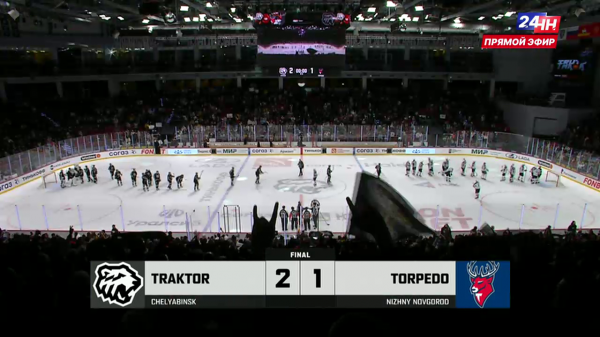 Счет на табло 2:1. Статистика 3-го периода: Броски: 13-31 ; Броски в створ: 5-16 ; Голы: 1-1 ; Вбрасывания: 13-7 ; Блокированные броски: 10-3 ; Силовые приемы: 7-5 ; Отборы: 0-1 ; Потери: 1-1 ; Перехваты: 6-5 ; Время в атаке: 03:29-06:56 ; Штраф: 4-2. Статистика матча: Броски: 41-72 ; Броски в створ: 14-38 ; Голы: 2-1 ; Вбрасывания: 37-23 ; Блокированные броски: 23-16 ; Силовые приемы: 16-17 ; Отборы: 4-4 ; Потери: 4-2 ; Перехваты: 24-15 ; Время в атаке: 12:35-17:47 ; Штраф: 8-4. Пожелаем удачи "Торпедо" в домашнем матче с "Локомотивом". Игра состоится в КРК Нагорный уже в эту среду, 29 ноября.