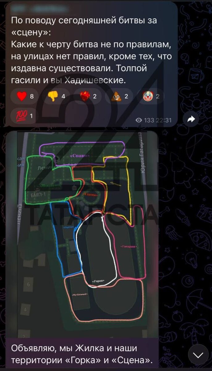 В Сармановском районе подростки начали подражать героям сериала «Слово пацана. Кровь на асфальте». Они создали свои telegram-каналы, выбрав для них названия двух известных в Казани ОПГ, в которых назначают «стрелки» друг другу. Там же участники публикуют видео своих драк, объявляют об общих сборах и «делят» районы, прикрепляя соответствующие карты. «Мы решили, что объединяться мы не будем по определенной причине: на улицах должны быть королями только одна группировка», - пишет участник одной из «группировок». При этом одно из своих «побоищ» подростки сняли на видео, наложив на него музыку из сериала. На кадрах мальчики гоняются друг за другом по снегу, толкаются и дерутся. После этого подростки делятся итогами «стрелок» в своих telegram-каналах. «Наши пацаны бились достойно, но силы были неравны. Многие наши еще не вошли в курс дела, тактическое отступление было неизбежно», - так подписали видео. Местные жители взволнованы случившемся и пока не знают, как на это реагировать. Кто
