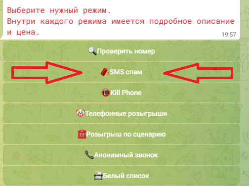 Здесь Вы узнаете как работает СМС-бомбер и как его использовать в telegram-боте КОТОПРАНКС. Чтобы воспользоваться услугой "СМС-спам", заходим в telegram-бот КОТОПРАНКС @catpranks_bot (либо по ссылке https://t.me/catpranks_bot). 1. Выбираем нужную нам категорию (здесь вы узнаете пошаговую инструкцию по пользованию ботом) 2. Выбираем продолжительность спам-атаки Новым пользователям доступен депозит на пробный период!!! Вы можете его использовать как в целях безобидного розыгрыша, либо же наказать обидчика! Все розыгрыши абсолютно анонимные!