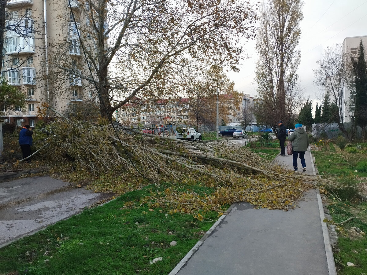 Приветствую вас на моём канале о жизни в Севастополе⚓⛵☀⛵⚓ Вчера у нас всю ночь бушевала стихия... Сегодня городу больно.... Очень больно.... "Шторм века" натворил делов... Мужа отпустили на выходной после стрессового дежурства на плавкране. Всю ночь его команда боролась за живучесть крана. Всё обошлось... Муж пришел домой после штормовая часов в 9, позавтракал и упал спать. Немного поспал. А в 15 мы решили сходить погулять в центр. И посмотреть, что натворил "шторм века" в нашем городе.. У соседнего дома упал огромный тополь. Перекрыл дорогу... Под этим тополем - чья-то машина.. Ее не видно.. Но если присмотреться, тотаы можете увидеть что-то голубое под ветками. Это машина.... Этот же тополь повредил металлический гараж. В гараже стояла машина. Машина тоже примята.. Попытались сфоткать корни этого тополя. Я специально встала рядом, чтобы были понятны размеры. Но фото не передаёт размеры, как хотелось бы... Корни тополя в диаметре - метра 2 Ужасно жалко людей, чьи маш