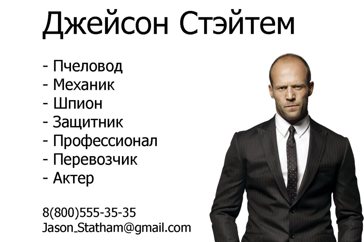 5 визиток актеров из названий их фильмов. Мастера-универсалы к вашим услугам :)