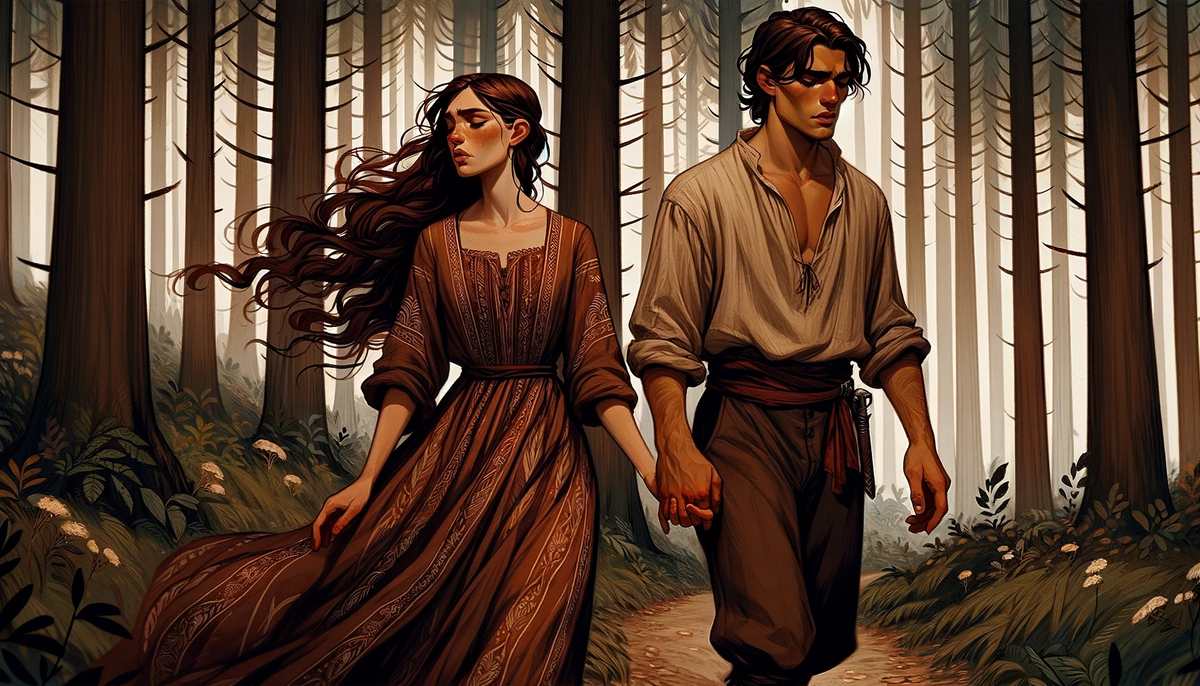 На следующее утро, когда деревня еще спала, Алекс и Мия собирались для отъезда. Однако, Мия, стоя у края лесной тропы, казалась озабоченной. "Алекс," – начала она, – "я не уверена, что это правильное решение. Ты рискуешь всем ради кого-то, кого знаешь всего один день." Алекс удивленно посмотрел на неё. "Но я не могу просто оставить тебя," – ответил он. – "Я чувствую, что должен помочь. Твоя деревня нуждается в защите, как и моя." Они молча шли по тропе, окруженной густыми деревьями. Мия шла впереди, погруженная в свои мысли. Внутри неё боролись страх за собственное будущее и чувство ответственности перед своим народом. Она знала, что Алекс – чужестранец в её мире, и опасности, которые им предстоит встретить, могут быть слишком велики для него. Алекс, заметив её беспокойство, остановился и взял её за руки. "Мия, я понимаю твои страхи, но я не могу оставаться в стороне, зная, что ты в опасности. Мы справимся вместе, я обещаю," – уверенно сказал он. Слова Алекса пробудили в Мии новую увер