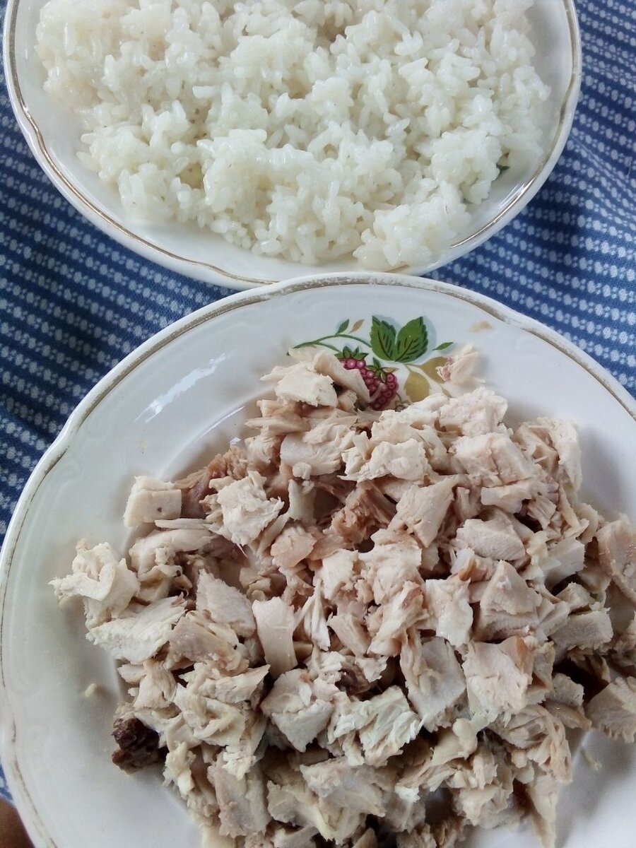 Привет, друзья. Нашла на даче старый журнал, а в нем рецепт салата под названием "Советский". Я такого не помню, но может кто-то и делал. Рецепт не давал покоя, значит нужно делать. В салат идет одна небольшая курица, я решила, что это слишком много и взяла два окорочка, сварила, сняла мясо,нарезала. В получившемся курином бульоне нужно сварить 1 стакан риса. Еще понадобятся 5 яиц вареных, 3 луковицы обжаренных и 1 стакан грецких орехов. Это по рецепту на целую курицу. Я же порцию уменьшила. А вы делайте, как считаете нужным. Все смешать и добавить майонез. Вот, что получилось. В общем мне салат понравился, буду делать. А вот порционная подача