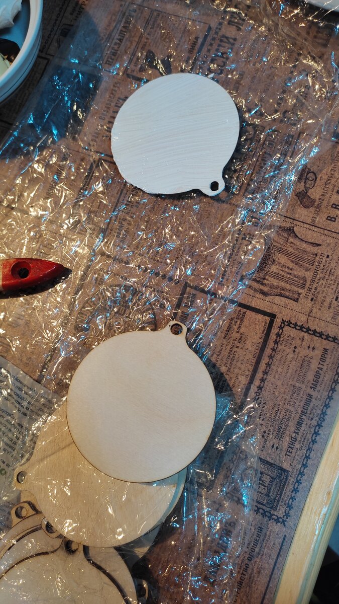 И снова новогодние игрушки! На этот раз деревянные. Настя, ты меня вдохновила😊! На этот раз будут а-ля винтаж... Сначала хотела вырезать из фанеры, но потом глянула на маркетплейс, купить готовые заготовки проще. Загрунтовала.