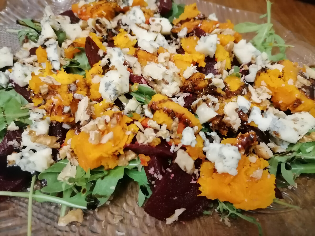 Впервые я попробовала этот салат в кафе, когда отмечала свое день рождение пару лет назад. Тогда меня и моих гостей этот салат совершенно покорил. Это сочетание вкусов и красок просто 💣💣💣 Марго потребовала, чтобы я повторила это яркое осеннее блюдо дома. Итак, салат "Симфония красок"🎃🎃🎃 Ингредиенты: Свекла 1 шт крупная или 2 шт маленьких , запечь или отварить Тыква запеченая 150 гр Руккола 1 упаковка 70-100 гр Сыр мягкий - 150 гр (на фото у меня сыр с голубой плесенью, тоже очень вкусно было) Семечки тыквенные, обжаренные для яркости вкуса Соус "бальзамик" для заправки Кстати, вы знаете, что ежегодно в Москве в Аптекарском огороде Ботанического сада проводится выставка тыкв, которые приезжают со всей России. В последний день выставки тыкву - победительницу разрезают и раздают посетителям. Некоторые экземпляры достигают полтонны, как, например, тыква Жоржетта. ...Я тоже иногда ощущаю себя тыквой Жоржеттой... Но вернемся к нашему буйству осенних красок и вкусов. Приготовлени