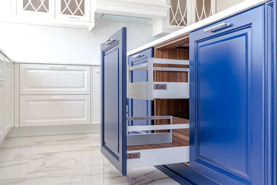 Кухня – это не только место приготовления пищи, но и центр семейных событий. Важным аспектом функционального помещения является правильная организация пространства, особенно когда речь идет о хранении крупной утвари и продуктов. В этом контексте глубокие выдвижные ящики выступают в роли идеального решения, предоставляя удобный и доступный способ организации вашей кухни. Рекомендуется использовать органайзеры и держатели, специально предназначенные для посуды. Это поможет избежать царапин и продлит срок службы ваших сковородок кастрюль и крышек. Мелкая бытовая техника, такая как миксеры, блендеры и кофемолки редко используется каждый день и глубокие ящики отлично подходят для их хранения. Это поможет держать рабочую поверхность кухни в порядке, при этом в нужный момент приборы будут под рукой. Для хранения круп, макарон, хлопьев для завтрака и других сыпучих продуктов лучше всего использовать однотипные емкости с наклейками о содержимом. Их также очень удобно хранить в ящиках, для соблю