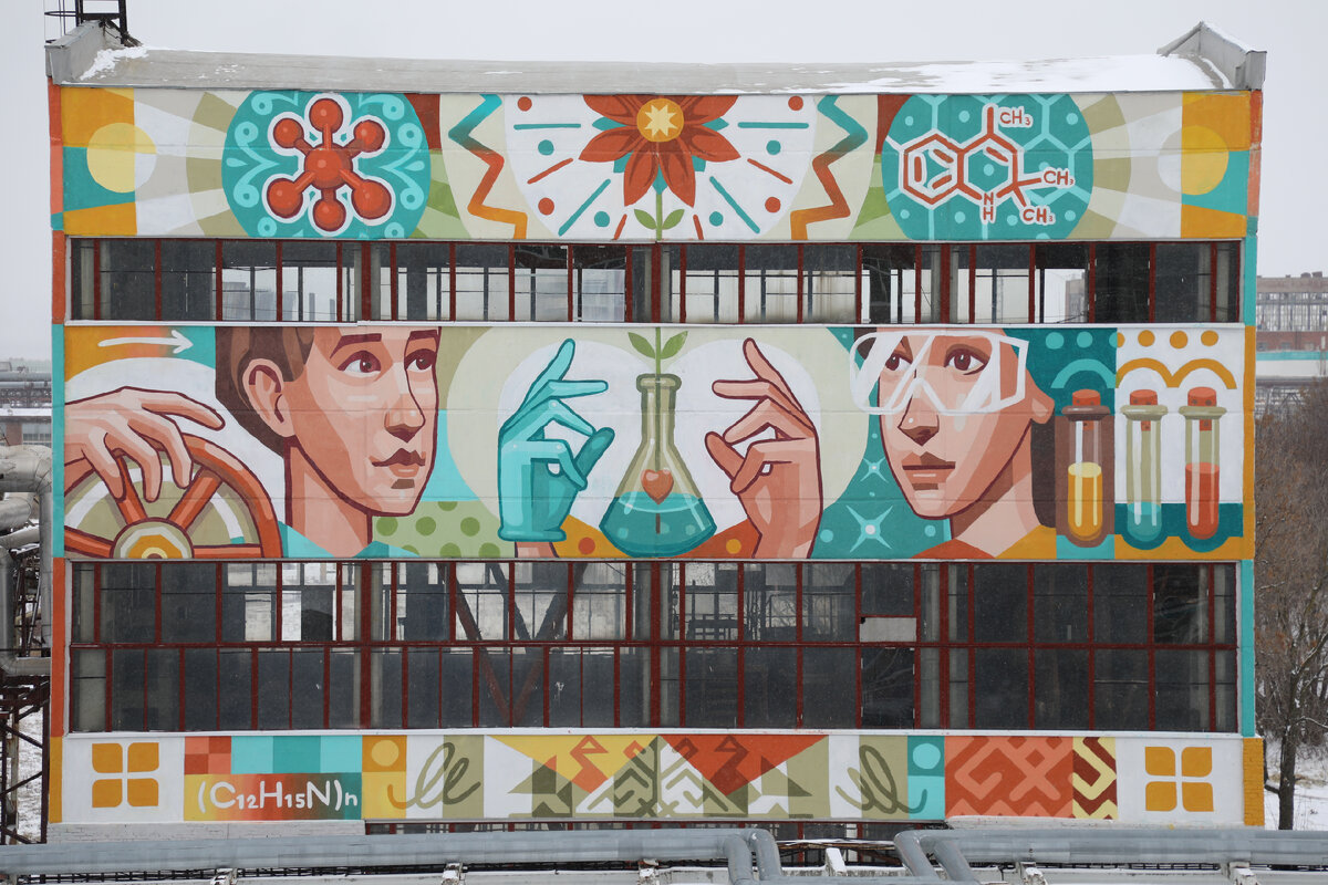 Ещё один мурал появился в Новочебоксарске, на этот раз на одном из корпусов ПАО "Химпром" высотой 20 метров. Мурал - это не просто картина. Он позволяет запечатлеть фактуру, идентичность и историю предприятия. В данном случае художник из Пензы, Никита Романов, великолепно сочетает образы химического производства и чувашской национальной культуры, создавая уникальное произведение искусства. Этот мурал привносит новый свет в повседневную жизнь химиков, позволяя им и всем гостям и посетителям предприятия взглянуть на промышленность под новым углом. Оно становится неотъемлемой частью производственной площадки, приветствуя всех работников и гостей с зажигательными цветами и яркими образами. Напомним, до этого к 9 Мая на стене девятиэтажного дома по ул. Винокурова, 26а создали мурал с портретом Героя Советского Союза танкиста Вячеслава Винокурова. Как вы оцениваете мурал? Как вы считаете, уместны ли муралы на стенах корпусов завода? Станут ли они точкой притяжения горожан? Украшают ли они г