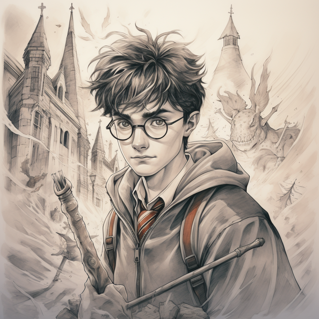 Пока продумала основные сюжетные линии, особенности изображения ключевых персонажей в стилистике манги, варианты динамичных композиций для захватывающих сцен квиддича и магических дуэлей.