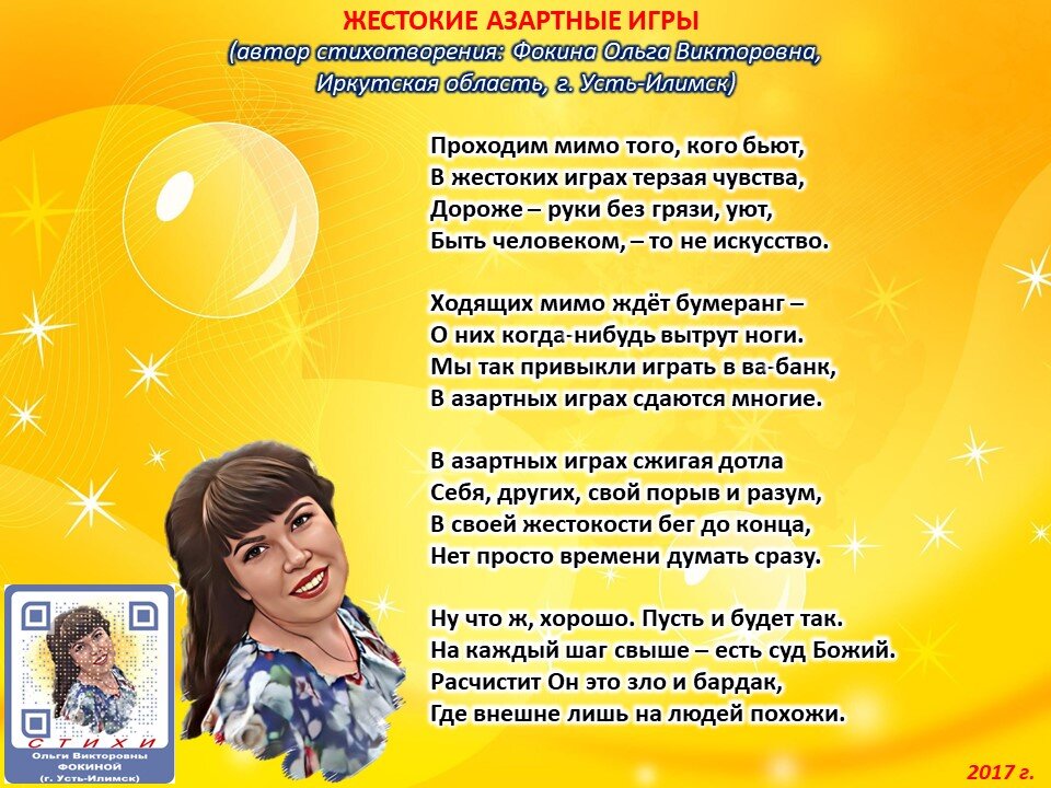 Жестокие азартные игры (стихи Ольги Фокиной, Усть-Илимск)