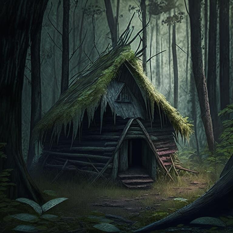 Глубоко в темных лесах, где лишь редкий луч света проникал сквозь плотные ветви, стояла древняя хижина. Отдаленные жители деревни рассказывали мрачные легенды об этом месте — о хижине, где тени играют с живыми и мертвыми. Однажды, группа исследователей, завороженных мистикой и тайнами, решила разгадать загадку хижины. Они отправились в путь, игнорируя предостережения деревенских старейшин. С каждым шагом вглубь леса, тень странного неизведанного стала окутывать их. Прибыв к хижине, исследователи обнаружили, что она выглядит старее, чем все легенды о ней. Деревянные доски скрипели под их ногами, словно хижина сама ощущала приближение посторонних. Внутри, в углу, стояла деревянная кукла с отметками времени, уходящими в глубину веков. С каждым проходящим часом хижина словно оживала. Тени танцевали по стенам, и слабые шорохи превращались в неясные шепоты. Когда вечер наступил, их фонари освещали неопределенные силуэты, плывущие вокруг хижины, словно охраняя ее секреты. Ночью, когда ветер