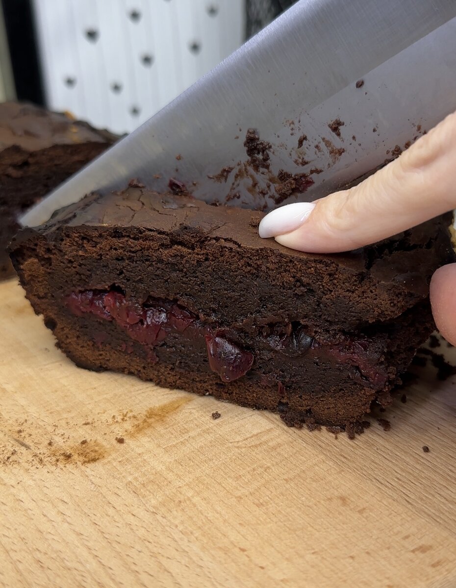 Настоящее волшебство вкуса! Ингредиенты📌 🔸Шоколад горький - 200 гр 🔸Сливочное масло - 100 гр 🔸Сахар - 210 гр 🔸Яйца - 3 шт 🔸Мука - 100 гр 🔸Какао - 20 гр 🔸Вишня без косточек замороженная - 300 гр 🔸Мороженое - для подачи Отправить брауни в заранее разогретую до 180 градусов духовку на 45 - 50 минут. Готовому брауни нужно дать остыть. Ход приготовления ⬇️ Правда аппетитно получилось? На сколько оценишь от 1 до 5?