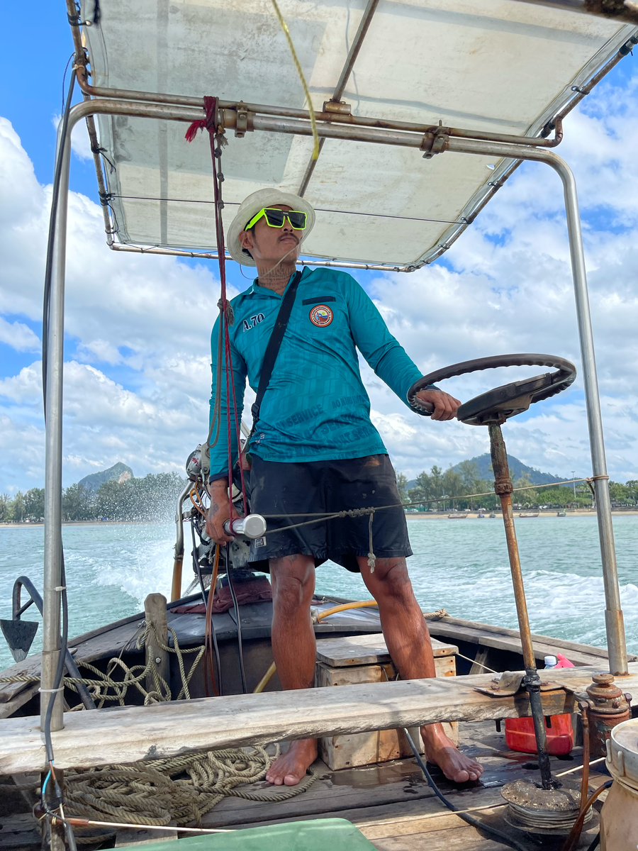После завтрака мы дошли до киоска, в котором продавали билеты до островов и пляжей. У киоска толпились туристы, кто-то покупал билеты, кто-то просто ждал посадки на лодку. Лодка отправляется при минимальной загрузке в 8 человек, утром это количество набирается очень быстро. Мы купили билеты в обе стороны за 200 бат, и уже через 10 минут направлялись сторону Рейли.