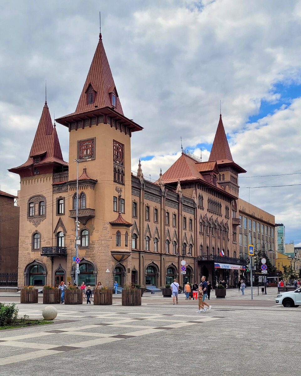 Гаргульи, сфинксы, ангелы, русалки, рыцари, атланты. Да, в Саратове на нас почти со всех фасадов или крыш кто-нибудь да смотрел. Будете там — имейте в виду. Этих красавцев никак нельзя упустить. Можно даже устроить тематический маршрут прогулки по городу — я обязательно в следующий раз. А пока расскажу вам о трёх... ...самых ярких домах, которые встретились на пути. Все они созданы в начале XX века. С гаргульями — здание консерватории имени Собинова. Башенки, шпили, стрельчатые окна. Будто замок из сказки. И неудивительно. Нынешний проспект Столыпина раньше был Немецкой улицей. И жили здесь в основном немцы. Возможно, поэтому архитектор... ...Семён Каллистратов и выбрал такой псевдоготический стиль. Только денег местные думцы сначала давать не хотели — мол, дорого. И городская легенда гласит, что вот эти пять воющих гаргулий на фасаде — как раз те самые жмоты-чиновники. Так архитектор им всё припомнил. Он был вообще большой затейник... ...дом с рыцарями, который неподалёку, тоже ведь