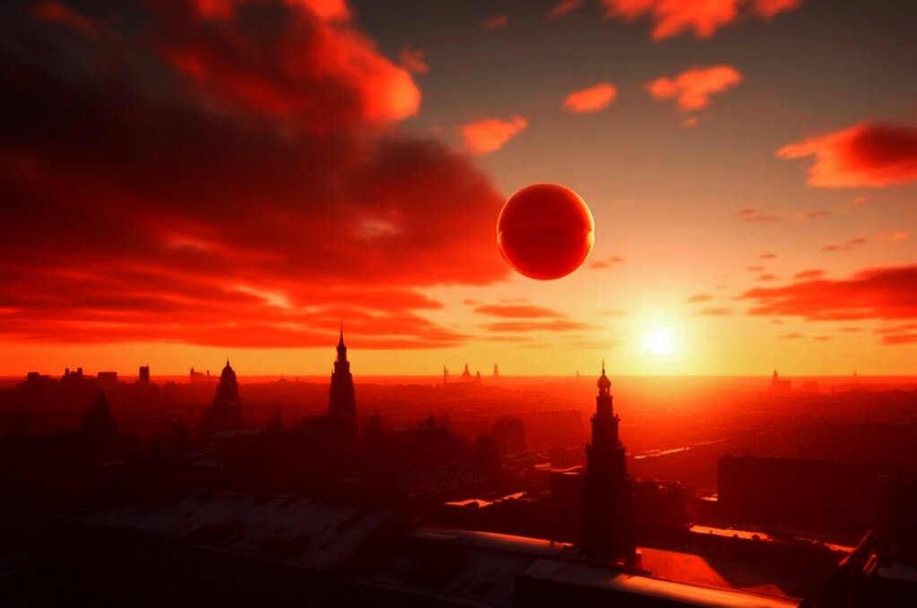 Когда я в очередной раз взглянула в окно, то увидела там оранжевый шар, который был, как бы вписан в угол между двумя вершинами деревьев. Это было ярко, красиво и неожиданно. Он был цвета пламени, размером чуть меньше Луны. Но я его видела в движении, а уйдя влево, он скрылся за листьями.