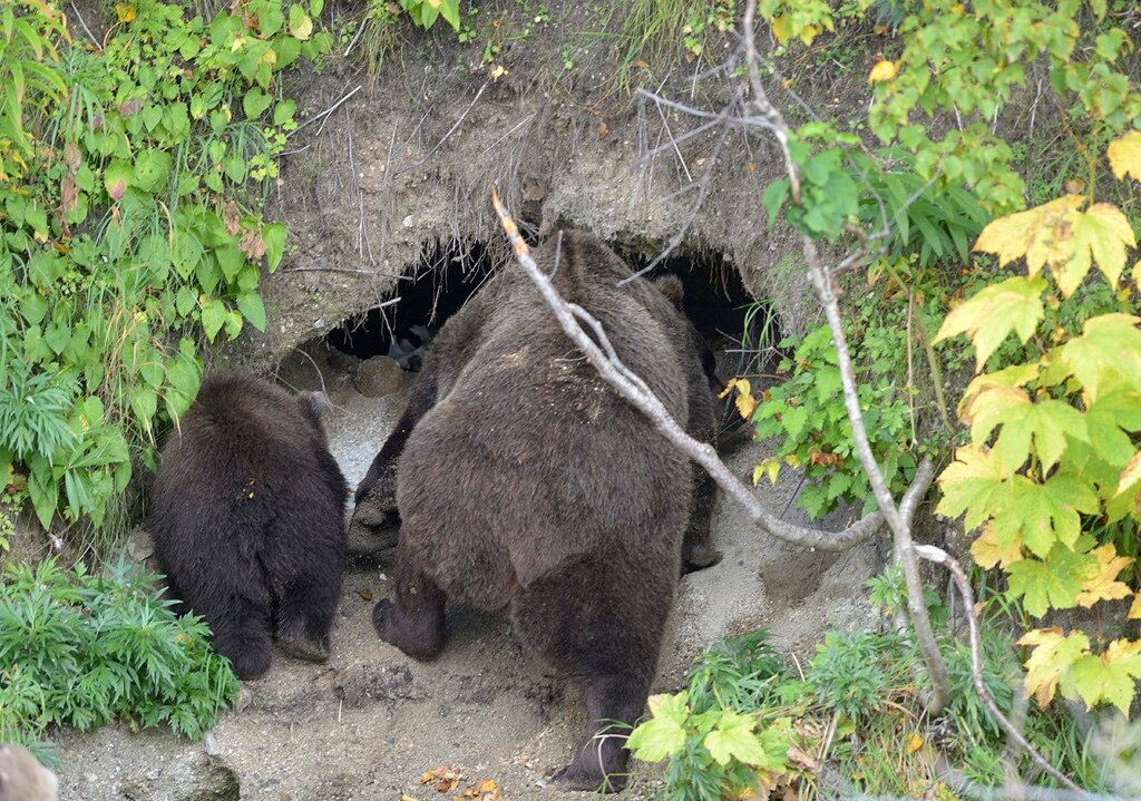 Обустройство места для сна — это целая наука. Причём чисто практическая — каждый медведь учится строить берлогу сам, методом проб и ошибок. Чем старше медведь, тем меньше в его зимней резиденции щелей и больше подстилки. Дважды на одном месте зверь зимовать не станет, а потому каждый раз к холодам приходится готовиться заново.