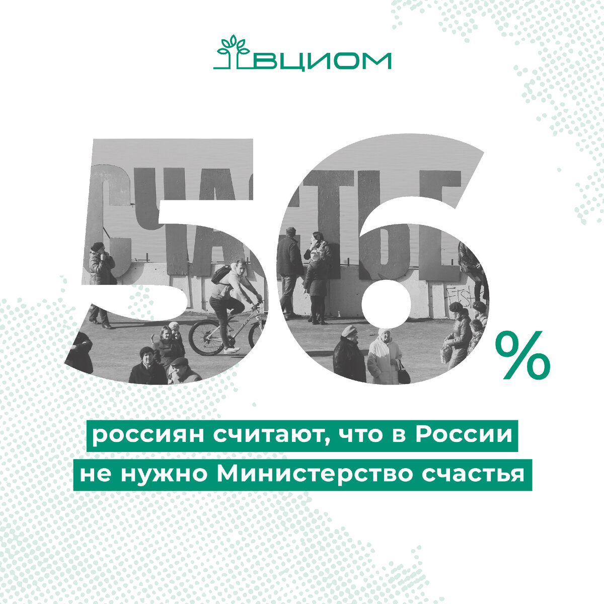 Более половины наших сограждан считают, что в России не нужно Министерство счастья (56%), за его создание — около четверти наших сограждан (23%). Затруднился ответить каждый пятый (21%).
