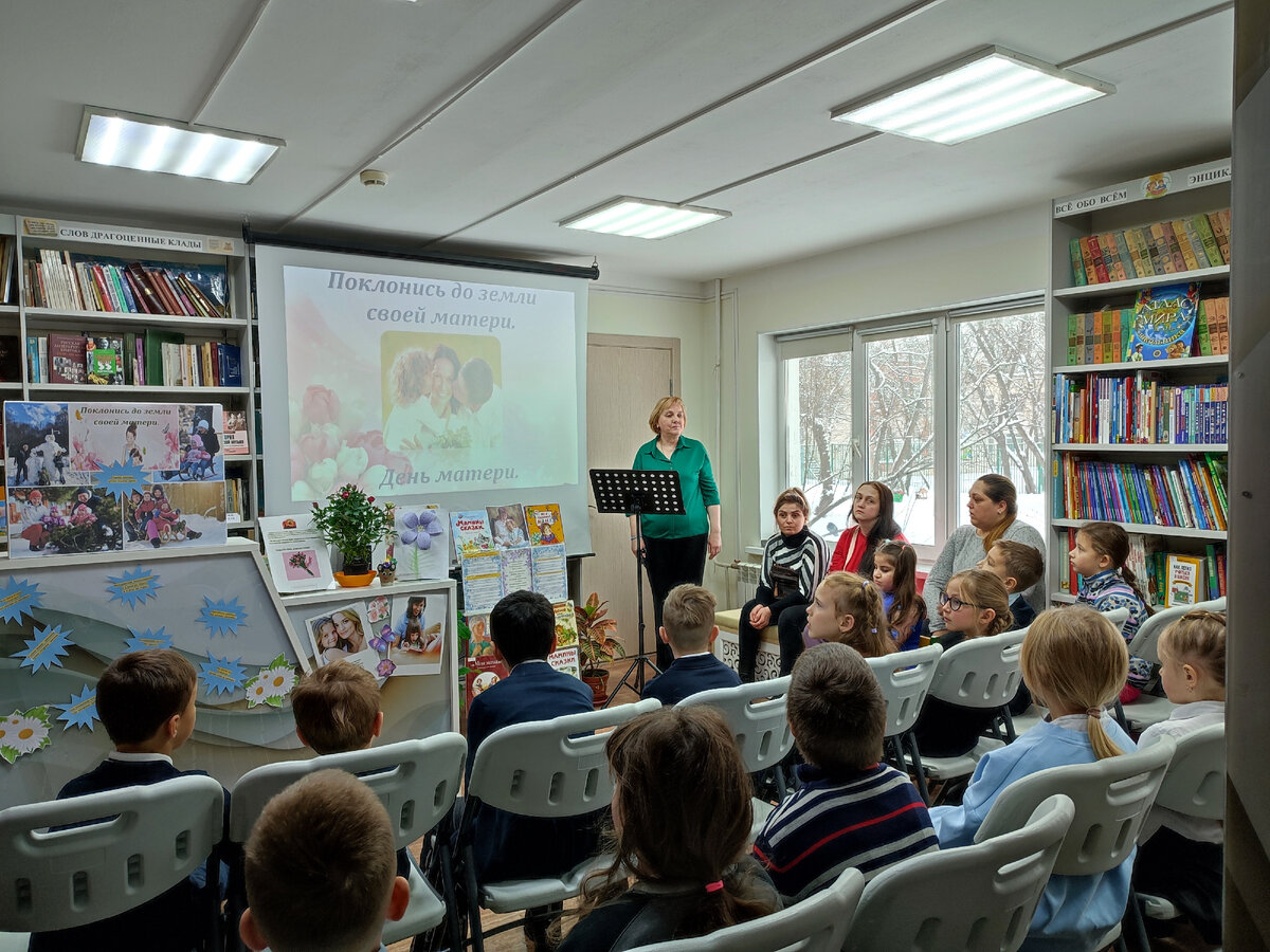 На свете добрых слов живёт немало, но всех добрее и нежнее лишь одно из двух слогов простое слово — «мама», и нету слов, роднее, чем оно! Указом Президента Российской Федерации от 30 января 1998 года установлено, что в последнее воскресенье ноября в стране отмечается праздник «День матери». Это праздник, который никого не может оставить равнодушным. В этот день каждый старается уделить внимание, подарить теплоту и заботу самому близкому и родному человеку на земле – маме. 24 ноября в Библиотеку семейного чтения были приглашены учащиеся школы №2117 для того, чтобы поздравить своих любимых мамочек и выразить всем детским сердцем любовь и благодарность. Библиотекарь Татьяна Илюхина рассказала об истории праздника, о том, какая счастливая и нелегкая судьба у всех матерей, для чего этот праздник нужен и важен для каждого из нас. Гости внимательно слушали о значении материнской любови, ведь она нас согревает от младенчества до старости. Мама учит быть мудрыми, дает советы, заботится о на