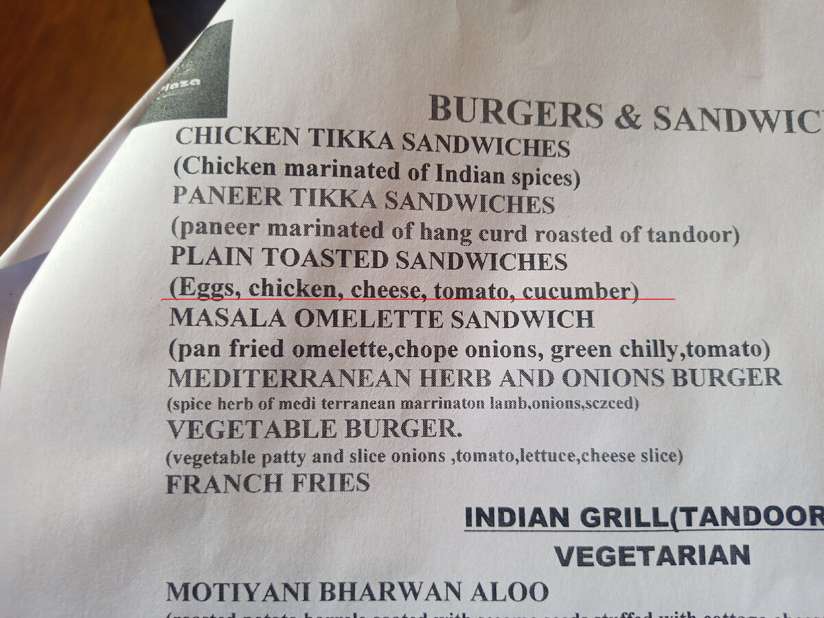 Утром в отеле у нас была первая (и единственная) попытка заказать завтрак в номер. Такое есть во многих отелях – типа, ресторана у нас нет, но вот меню, можно заказать завтрак в номер. Мы заказывали при активном участии нашего гида (персонал в отелях активно делает вид, что знает английский, но по факту и судя по результатам, они и хинди знают так себе).