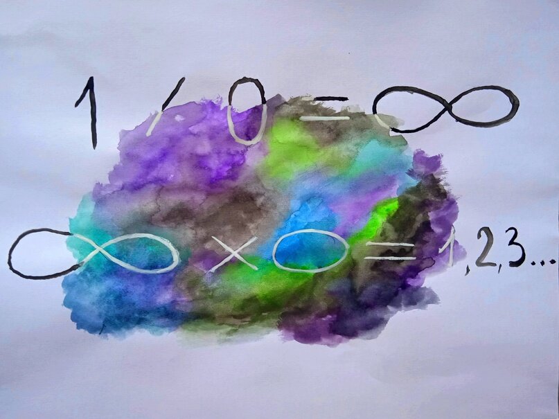 Поговорим о бесконечности, математике и рождении материального. На ЮТюбе увидел как один известный эксперт в области математики математически и физически доказывал почему нельзя делить на ноль. Тезис, который нам известен с детства. Однако, думаю как мы его услышали, так и ни разу не задумывались над его сутью. И уж, тем более, вряд ли кто-то задавался вопросом, “почему же все-таки нельзя?” Математик начал с физики. У вас, сказал он, есть литровый пакет сока, которым нужно напоить школьников с таким условием, чтобы каждому досталось 100 мл. сока. Сколько школьников получит сок? Очевидно… 1000/100=10 Но, вот поступило новое распоряжение: давать каждому только 10 мл. сока. Каков у нас будет охват напоенных? Тоже очевидно… 1000/10=100 А если по 0,1 мл. сока? 10 000. Очевидна и динамика. Чем меньше у нас в делителе, тем больше результат. Поэтому, если мы делитель уменьшим до нуля, в результате нас должна ожидать “бесконечность”... 1000/0= ∞. А такого числа, как говорит математик - нет! Тож