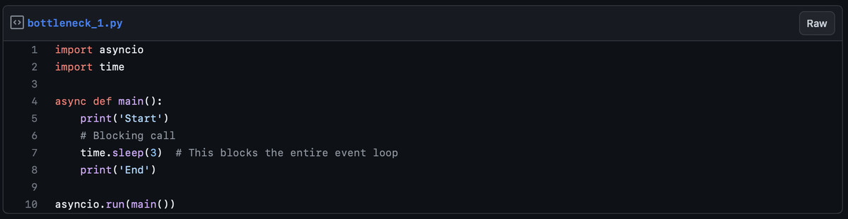 Здесь чуть сложнее. Видно, что 90% времени уходит на системные вызовы, но поменялась строка - теперь это сам asyncio.run(). Такой паттерн вывода профилировщика лучше всего просто запомнить.