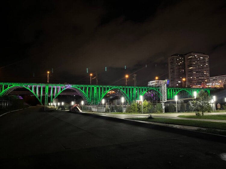 Экофлешмоб: в регионе подсветили зеленым цветом мост и колесо обозрения